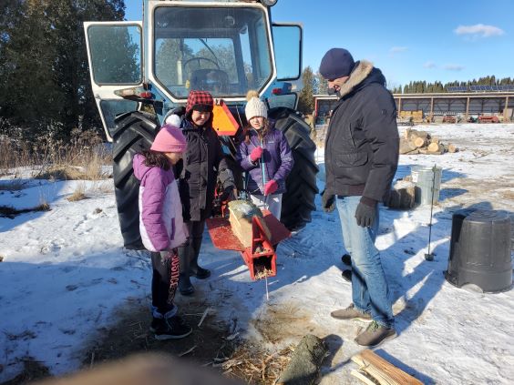 Feb 1 2025. Dorothee and I need a little help splitting firewood so Shannon, Scarlett, Eleana and Ali worked the log splitter. It was a cold but sunny day.