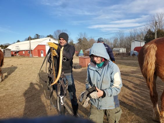 Jan 5 2025 Log pulling fun day Ali Learning how to harness a horse This was a fun day for all of us where everyone learned to work with the horses. |