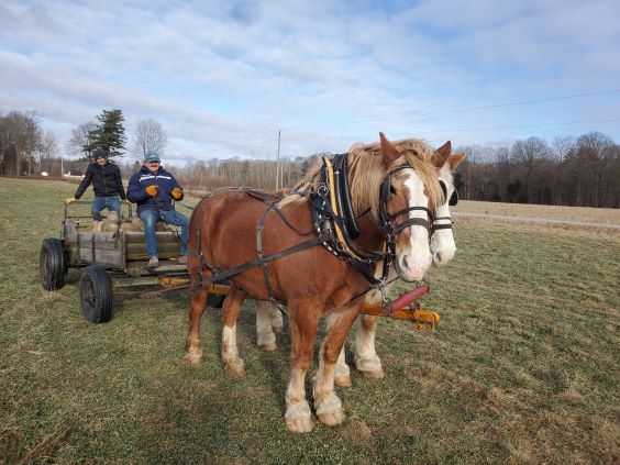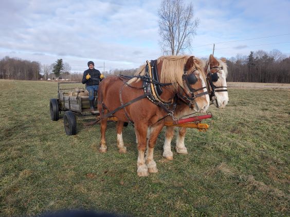 Jan 5 2025 Ken driving Duke and Jim with a load of wood from the north woods. |