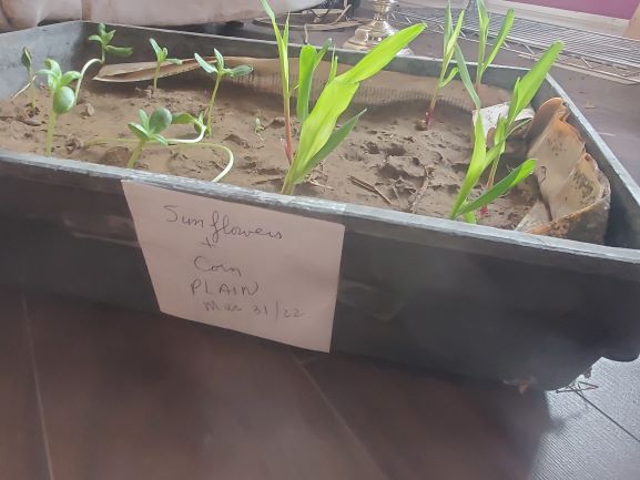 April 16 2022 . This is the sunflowers and corn planted without anything else. |