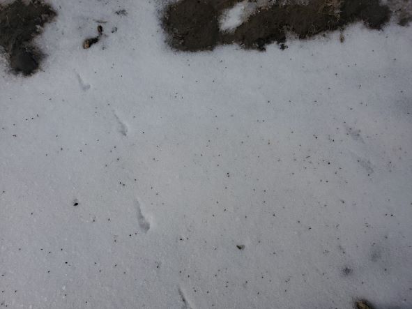 Feb 26 2022. If one looks closely you can see little specks of camelina seed on the snow. |