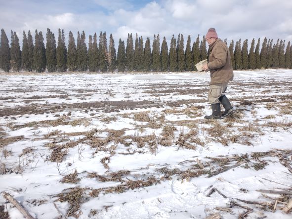 Feb 26 2022. Just starting out across the field with the hand spreader. |