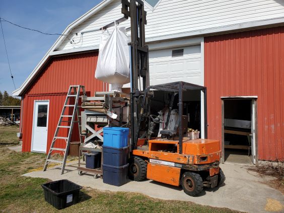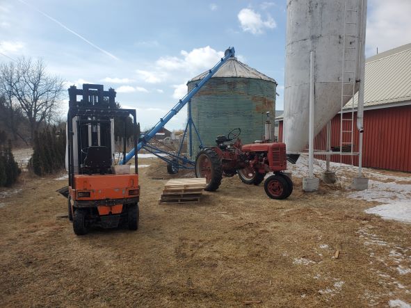 Just installed the new to us grain bin. Dec 26 2021. This was quite a feat. I drove 2 hours at 35 kph to pick it up on my hay wagon and came back 2 hours. Then there was the problem of setting it up on some cement blocks. Luckily the forklift was able to do it, but it was a real headache for quite some time as I thought things through. Hopefully I'll get my bumper crop of oats in it on a dry sunny day. |