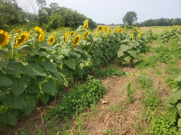 Finally July 26 2021 we have some emerging sunflowers in the north field! |
