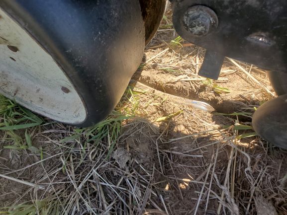 Just testing the depth that the planter will need to go through the crimped rye. |