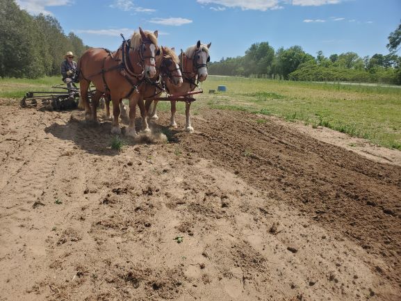 May 17 2022 The horses and Mat have been busy plowing up the winter kill oats and radishes. I put the oats in just too late last year so not enough residue so I plowed it. Marvellous how well the horses performed over a few days. We have been working in the early morning as the days have been too hot. |