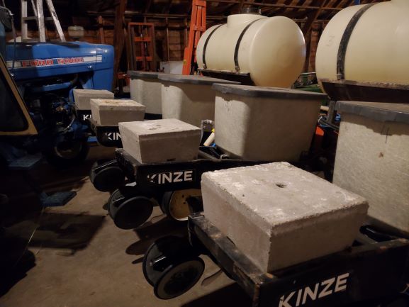 May 28 2021 Rained today but just not enough. I'm planning on planting the crimped rye So I added some heavy weights to the planter. |