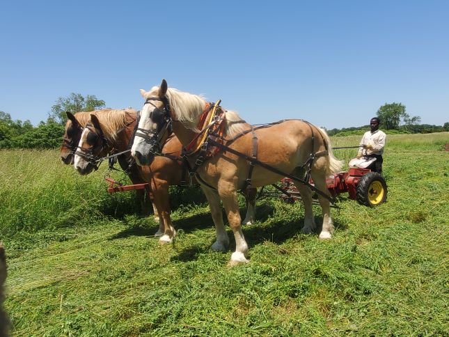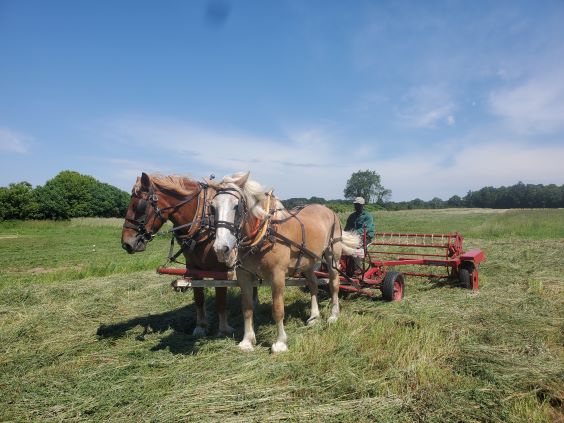 June 12 2024. The horses pulling the tedder to fluff up the hay. |