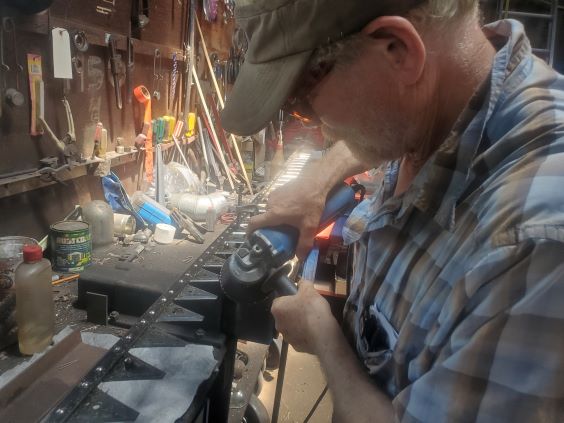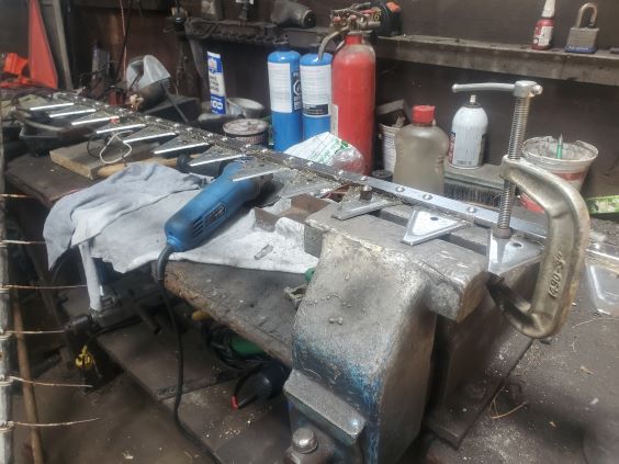 June 6 2024 there is a lot of preparation in getting ready for haying. The sickle mower needs greasing and adjusting but most important is the sharpening of the blades. Here is a series of photos showing how I sharpen the blades, |