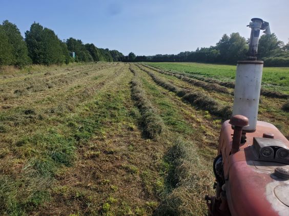 Aug 29 2024 .We overplanted the pasture with a hay mixture in hopes to have a hay field in 2026. Here Kari is making sure the seeds are distributed evenly |