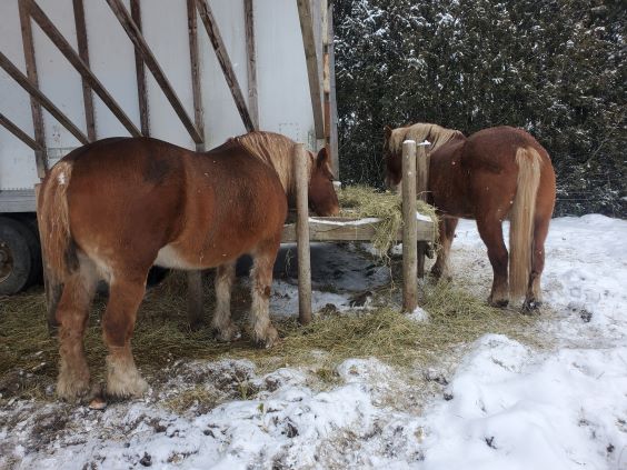 Jan 19 2024. Finally the cold weather came and the feeding area for the horses has frozen. Got to figure a better way to keep the grounds from turning to mud every fall. Yes they are sloppy eaters |