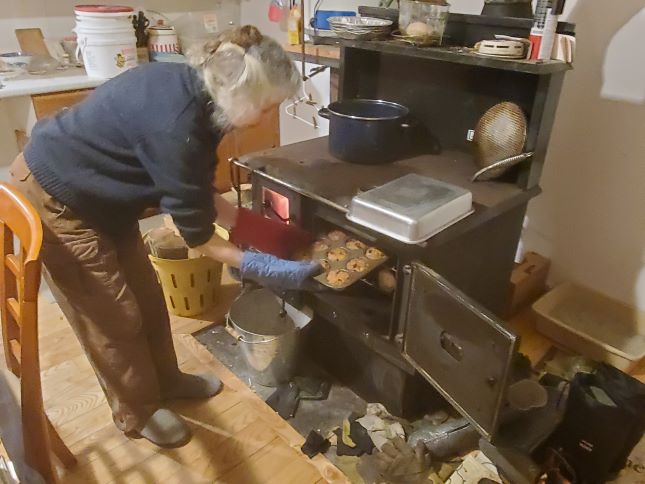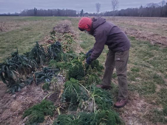 Jan 4 2024 Dorothee picking up Kale for our supper dish |