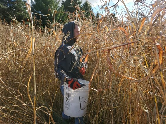 Oct 26 2024. Nicolas helping with harvesting the Sorghum by hand. |