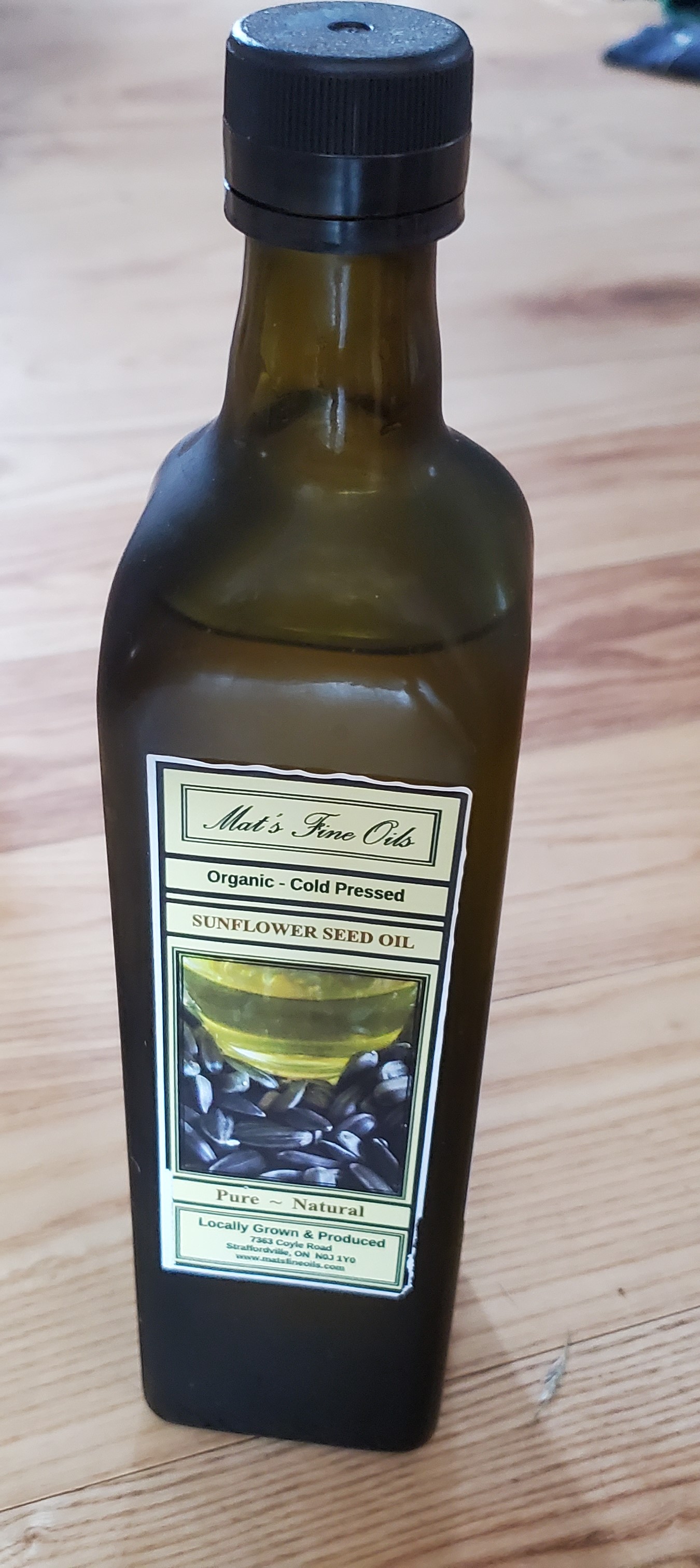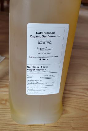 We sell all oil in 250ml, 500 ml and 750 glass bottles. All bottles can be returned for $1.50 per bottle which are thoroughly washed and refilled. We also bottle larger quantities in plastic 4 and 10 liter jugs. All bottles have a date the oil was pressed listed on the side of the bottle.
